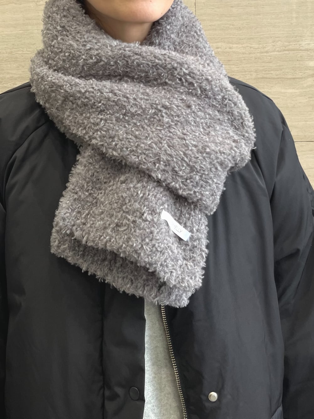 もこもことした表情豊かボア素材が、首元を優しく包み込むマフラー。