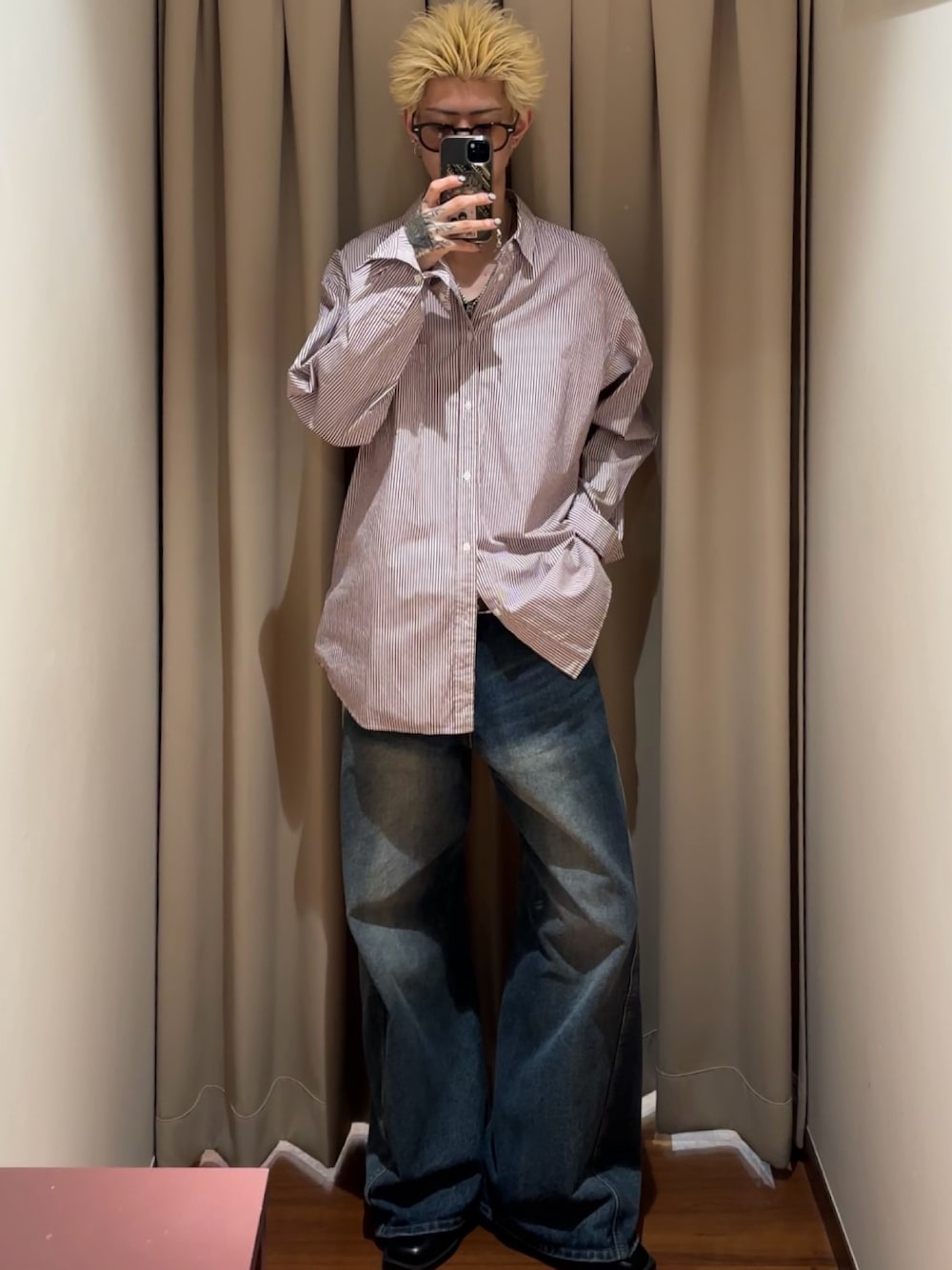 製品で特殊な洗いを施した、天日乾燥の洗いざらしのような雰囲気が特徴です。オーバーサイズなリラックスしたシルエットを採用しました。ドレスシャツ工場で、美しく見える仕上げにこだわりながら、ステッチはあえて50番手ステッチと環縫いを採用し、ダンガリーシャツのように仕上げています。タンブラー乾燥かけても縮まず、何度でも心地よいシワ感とドライなタッチが復元します。