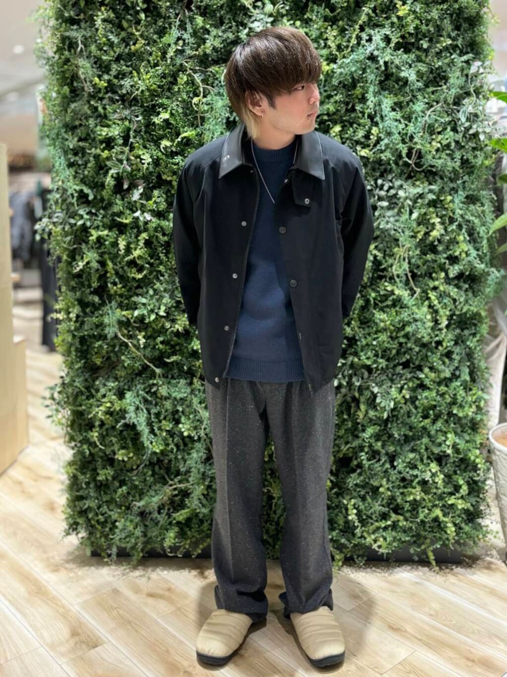 全体をブラックで統一した襟には、劣化しにくい合成皮革を採用し、大人らしい雰囲気を演出。着丈はインラインより大幅に長く設定されており、裾にはコーチジャケット特有のドローコードが付いているため、シルエットの調整が可能です。膨らみを持たせ、コーチジャケットやブルゾンのような着こなしも楽しめます。
