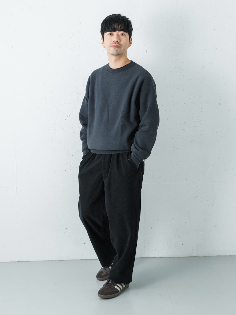 身幅にゆとりを持たせつつ、ウエストリブをやや強めに設定することで、ブラウジングして着用する、新感覚のシルエットを提案します。従来のChampionとは一味違う、今着たいスタイルを叶える一着です。