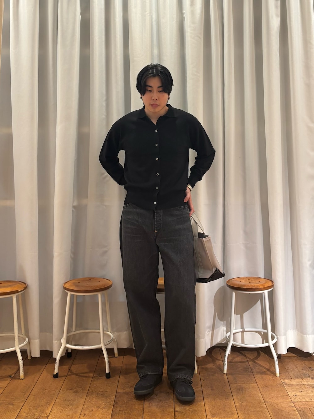 ・ゆるめのシャツやスウェットと合わせて、リラックス感のあるカジュアルスタイルに