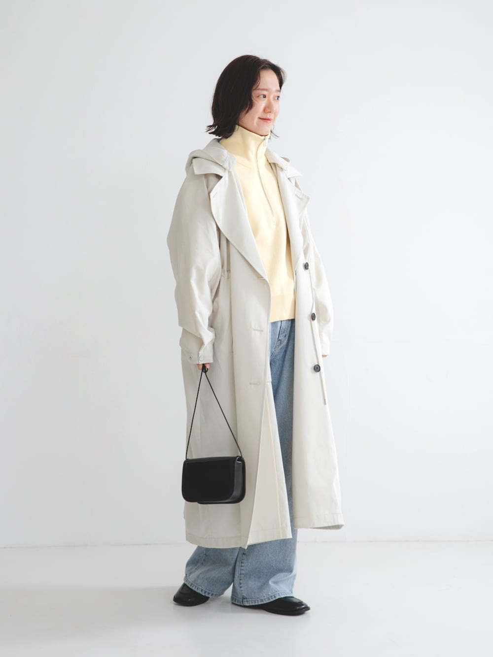 コンパクトな着丈のため、長めのシャツとのレイヤードやレーススカートを合わせたミックススタイルもおすすめ。裾のリブが腰位置で止まるので、ボトムスを選ばずバランス良く決まります。春先までロングシーズン活躍する万能な一着です。
