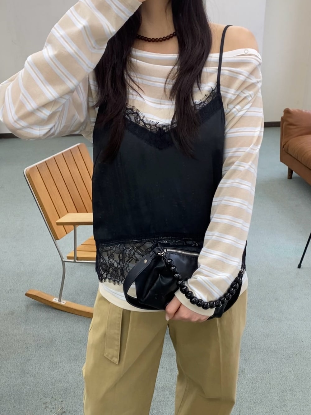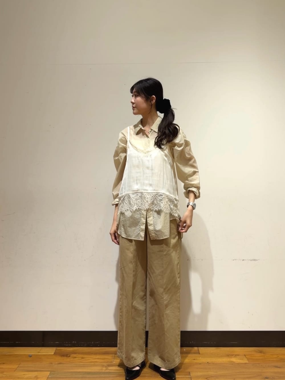 キュプラシャツやレースキャミ、ドレープカットソーなど、女性らしいトップスを合わせた大人のきれいめカジュアルスタイルがおすすめ。