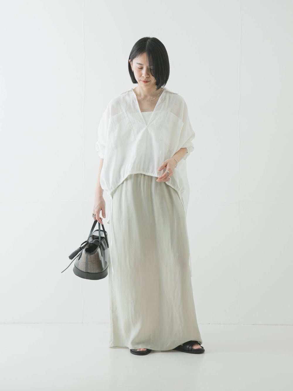 ご自宅で手洗い可能なイージーケアも嬉しいポイント。丈の長いシャツやゆったりとしたニットを合わせたリラックス感のある着こなしや、キュプラシャツとのセットアップでワンピース風に纏うスタイルもおすすめです。