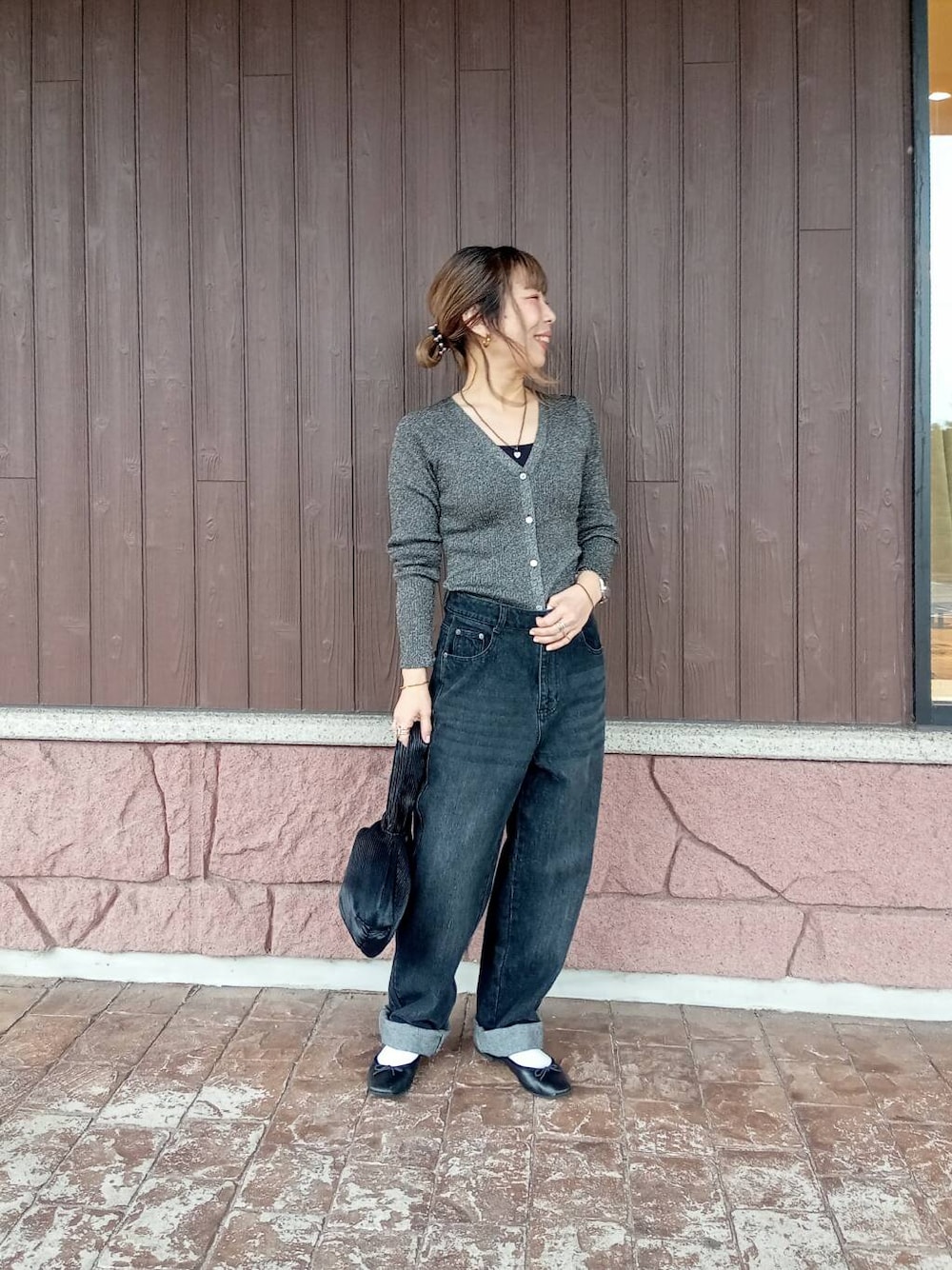 【ベーシックデザインながらも旬顔に仕上がるラメカーディガン】