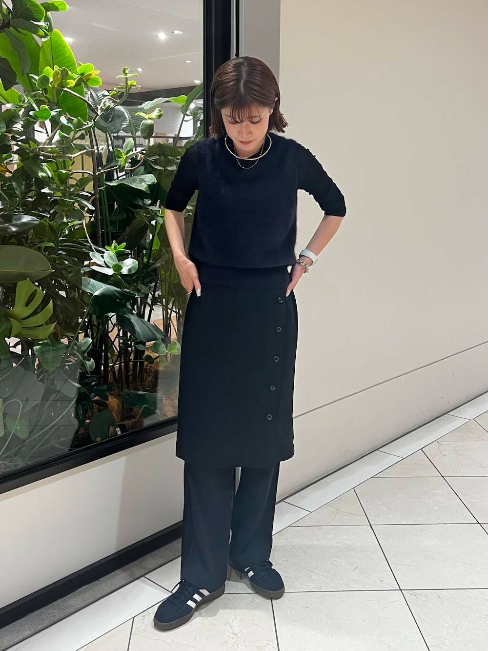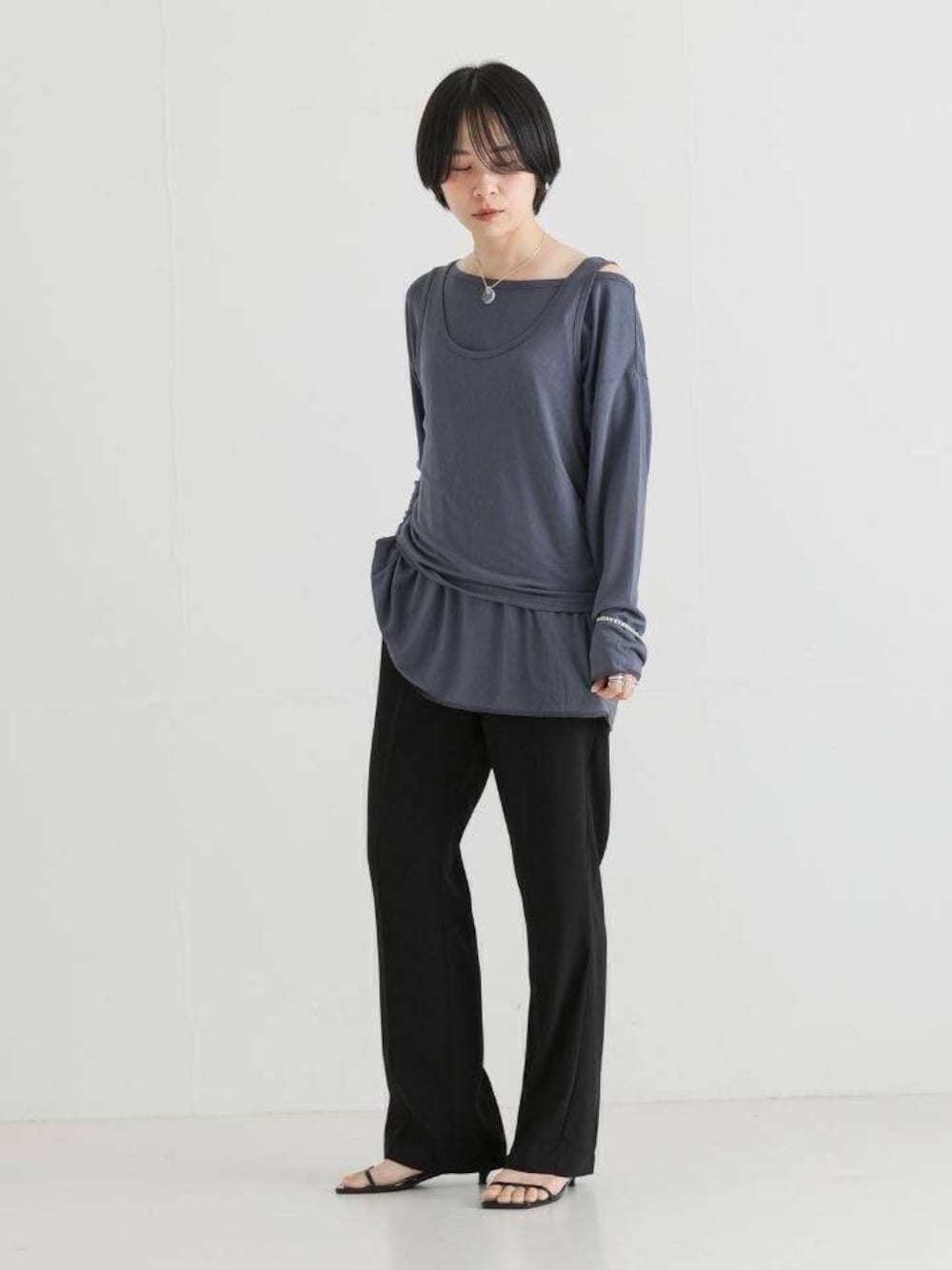 同色展開のレイヤードラップスカート(UR46-25X001)との、レイヤードスタイルがおすすめ。