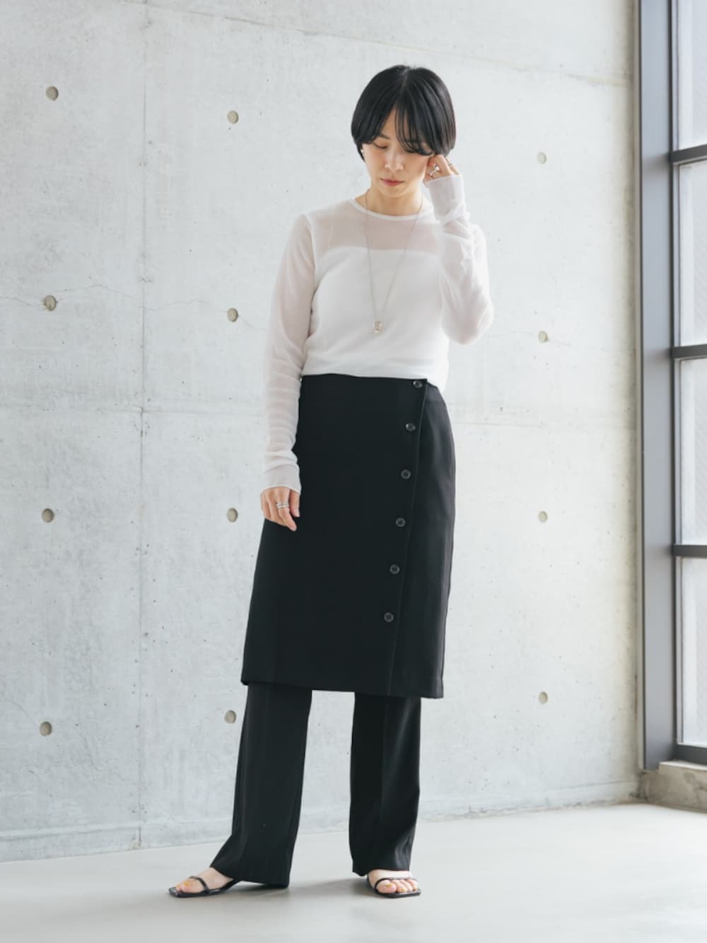 同色展開のレイヤードラップスカート(UR46-25X001)との、レイヤードスタイルがおすすめ。
