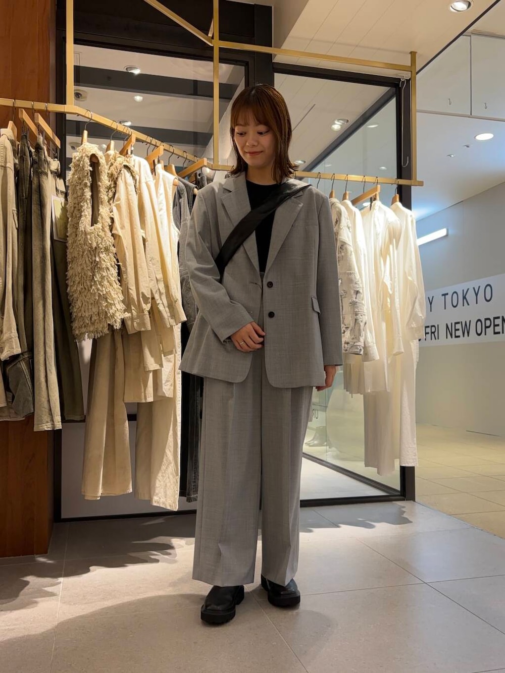 お手持ちのアイテムとはもちろん、同素材のスーパー100ウールワイドスラックス(UR46-24C003)とのセットアップでの着用もおすすめです。