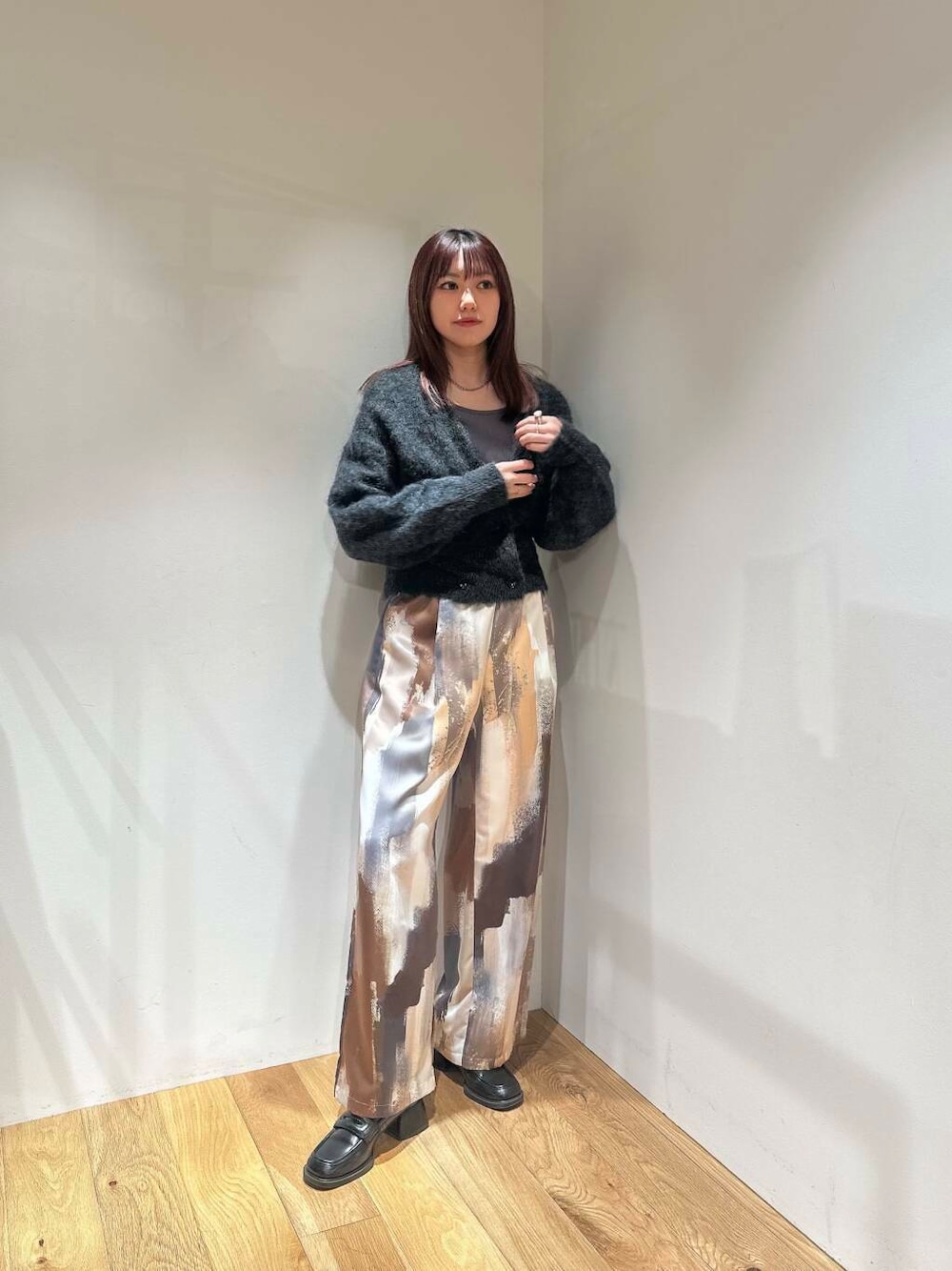 洗練された印象に導くダブルカーディガンは、アルパカ素材で有名なイタリア糸を使用しており、アルパカとキッドモヘヤの上質な糸にシャギー加工を施し仕立てました。