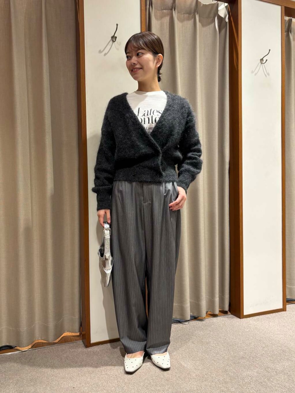 インナーにカットソーを合わせたリラクシーな雰囲気が◎