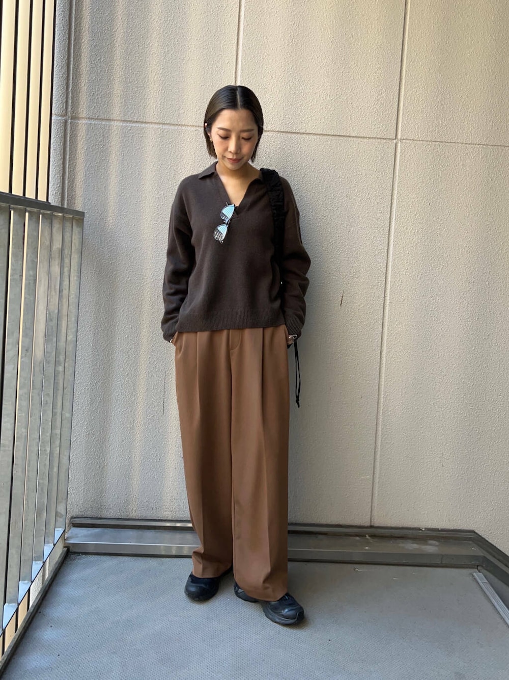 【スタイリングにアクセントを加える、キーネックニット】