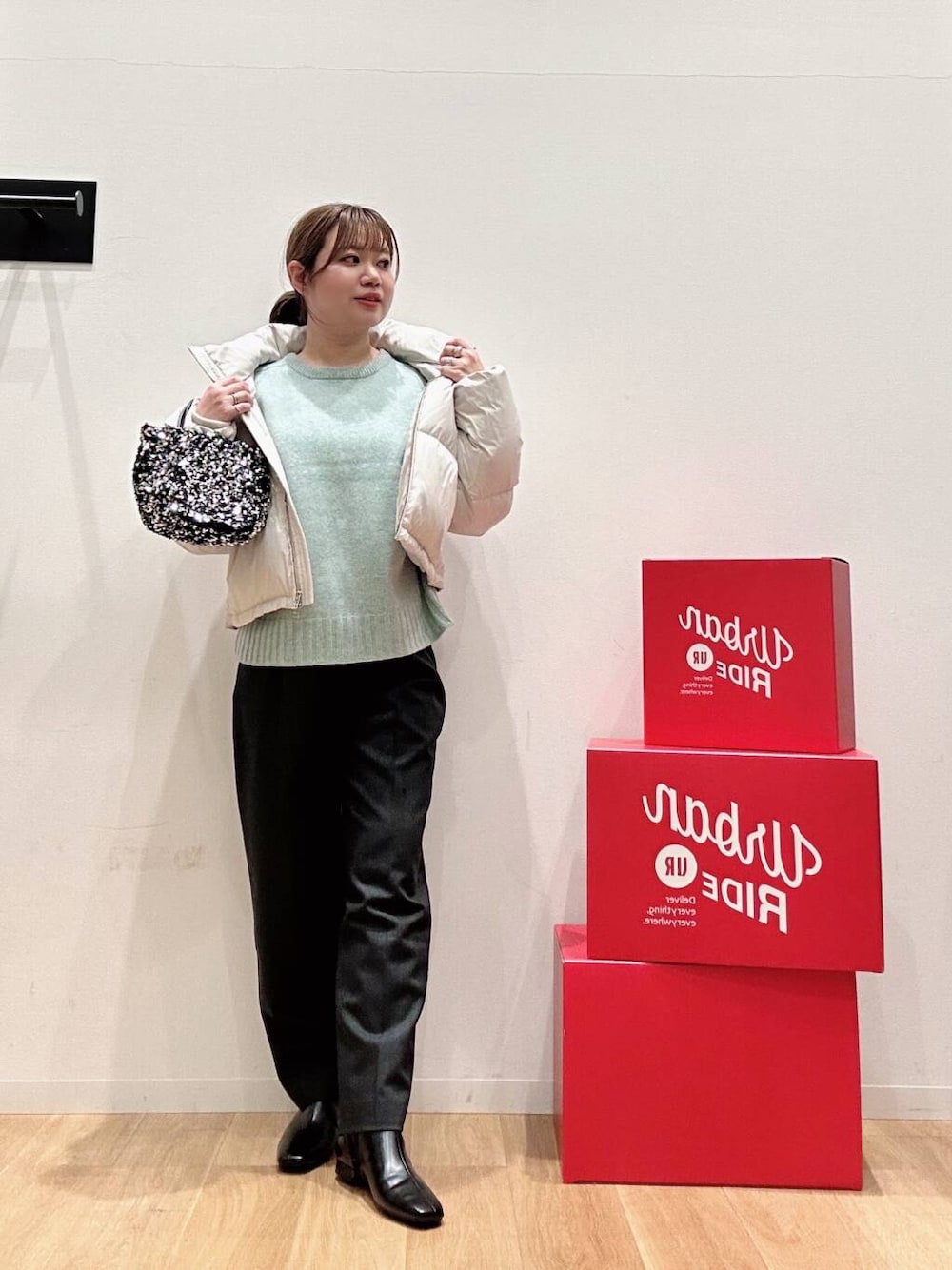 ニットやシャツ、ブラウスなどシーンに合わせたスタイリングを。