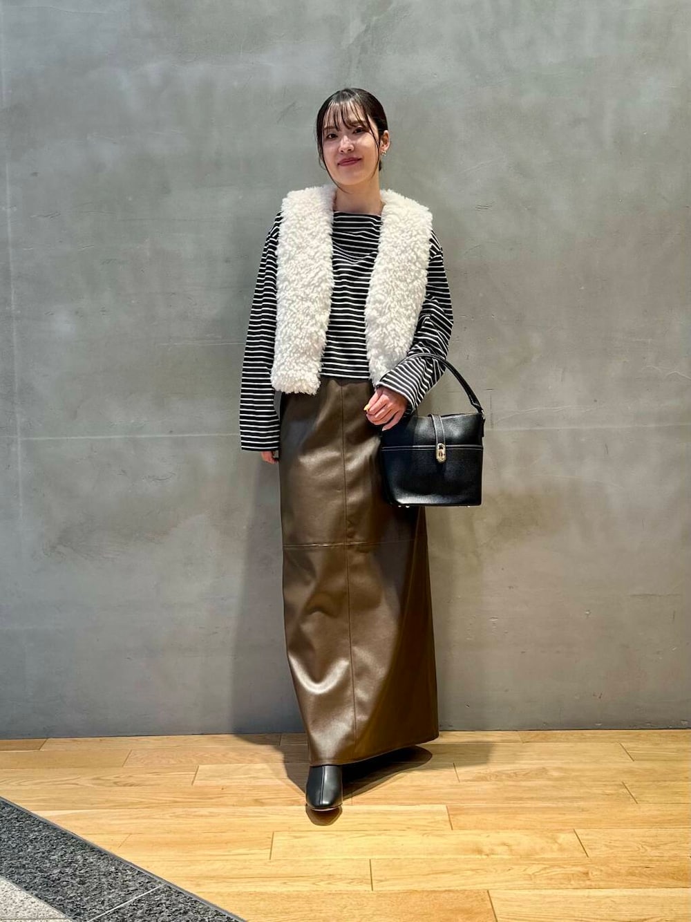 シボのような表面感のある生地を使用したレザーライクマキシスカート。