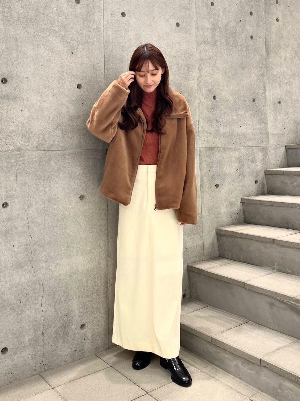 お手持ちのアイテムに合わせるだけで、一気に雰囲気のあるスタイリングが完成するコーデュロイスカート。