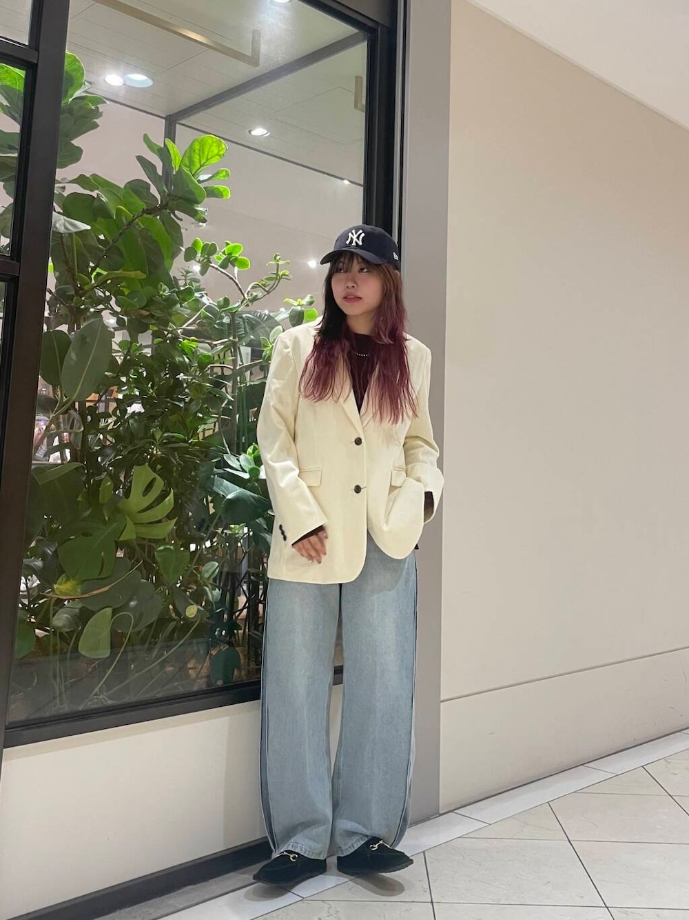 衿ぐりが広めにあいたトップスで女性らしく、ロゴTで遊び心を足した大人カジュアルなスタイリングなど、インナーで雰囲気を変えてみて。