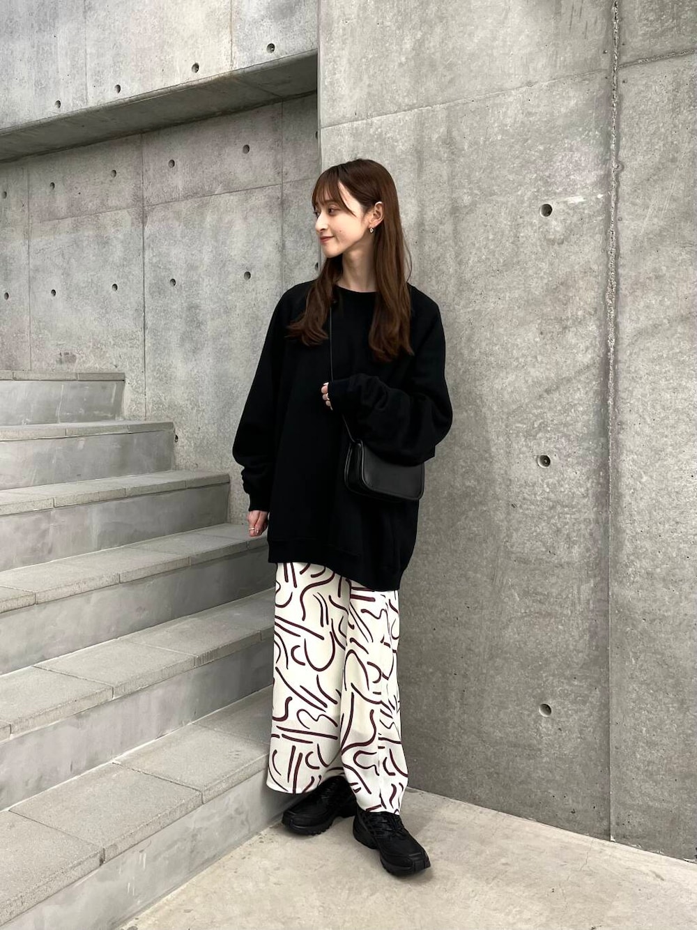 シルエットは体のラインを拾わないゆったりとしたIラインながらも、柔らかく落ち感のある生地ですっきりとした印象に。