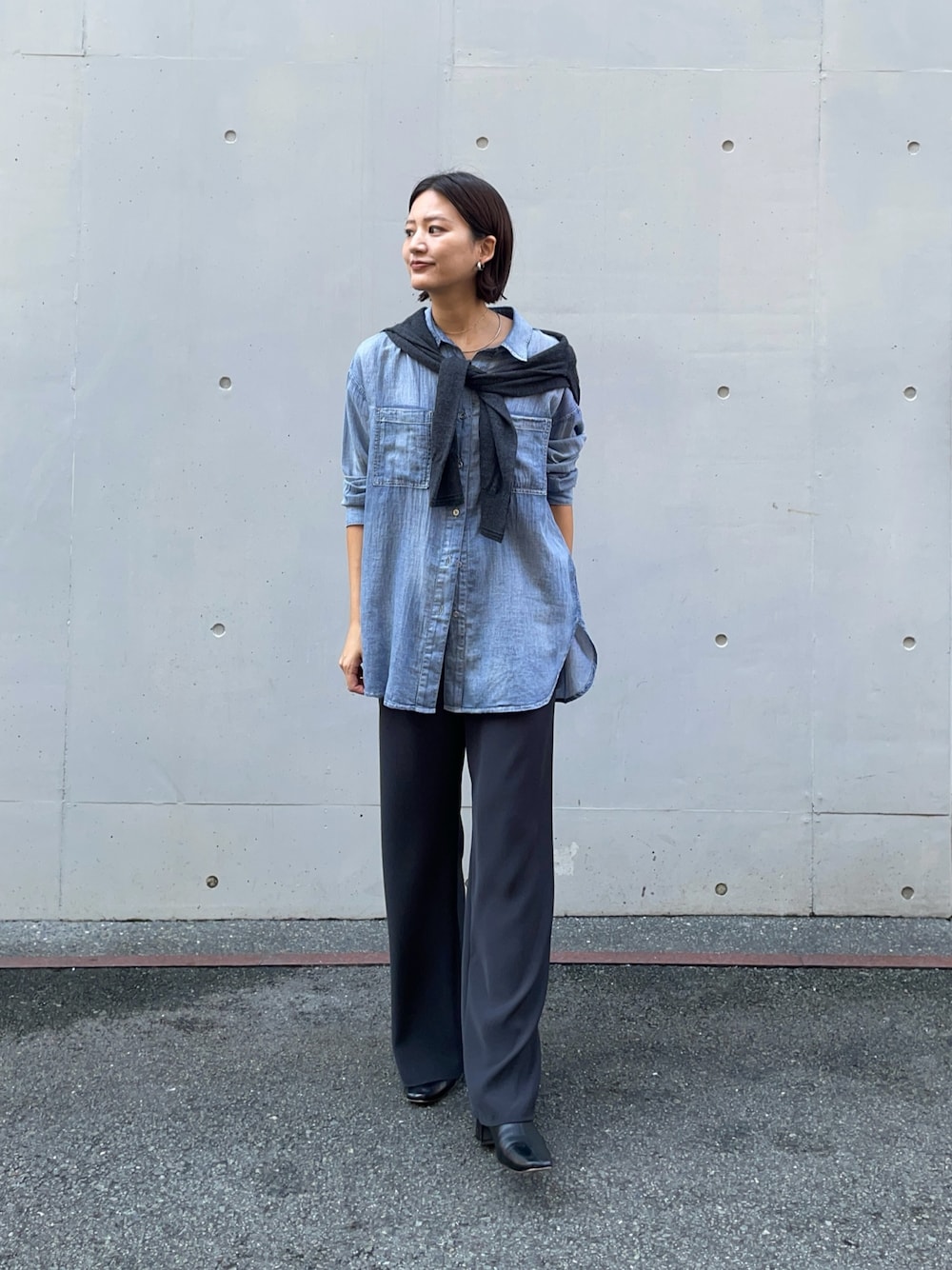 定番のデニムシャツも、落ち感のある素材でぐっと今年らしい印象に。