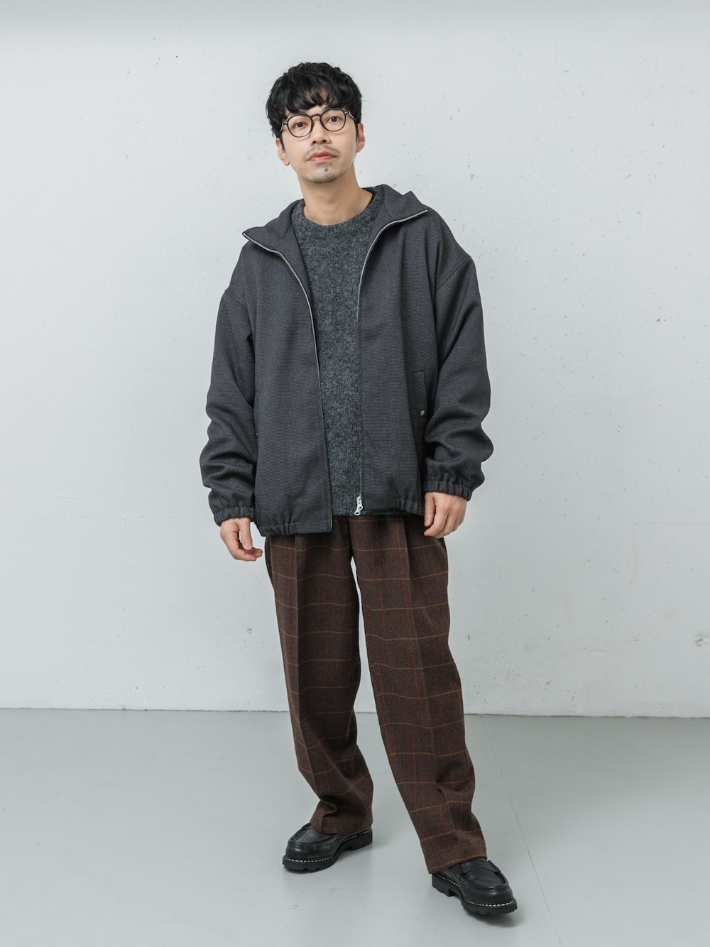 ・ウール混の糸がもたらす温かみのある風合いと、肌に触れる面(裏側)のタッチの良さで、快適な着心地