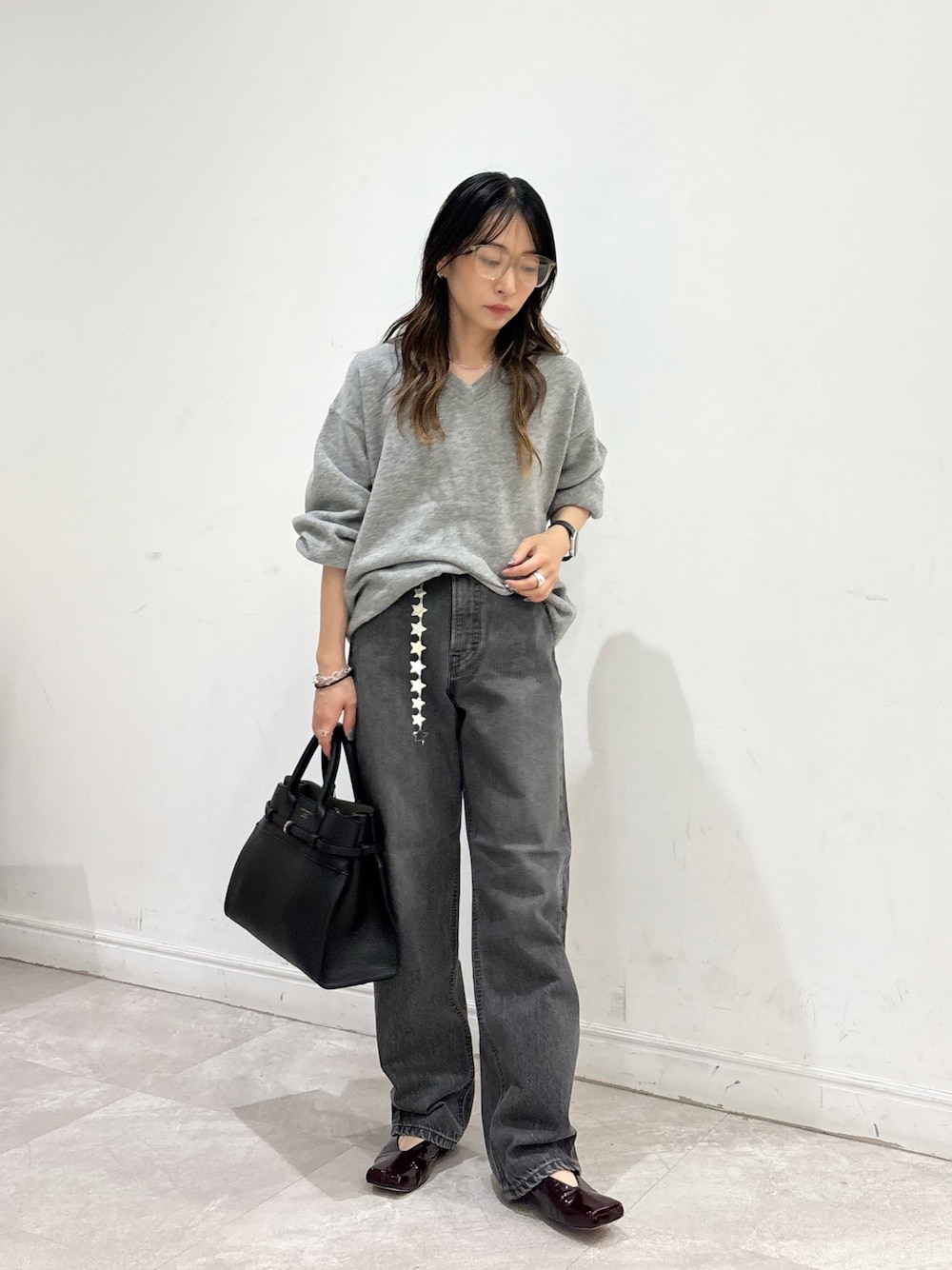 英国羊毛の上質さが際立つ、Vネックルーズニット 。