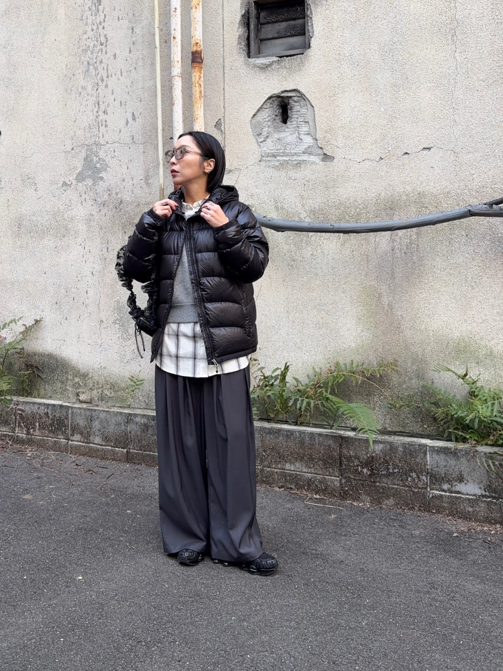 裾のリブを内側に折り返すと、ボトムスとのバランスが取りやすくなります。