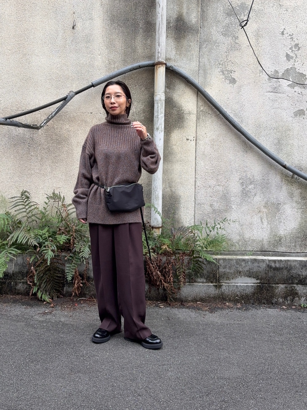 高めでゆったりとしたタートルネックが、こなれた抜け感を演出。