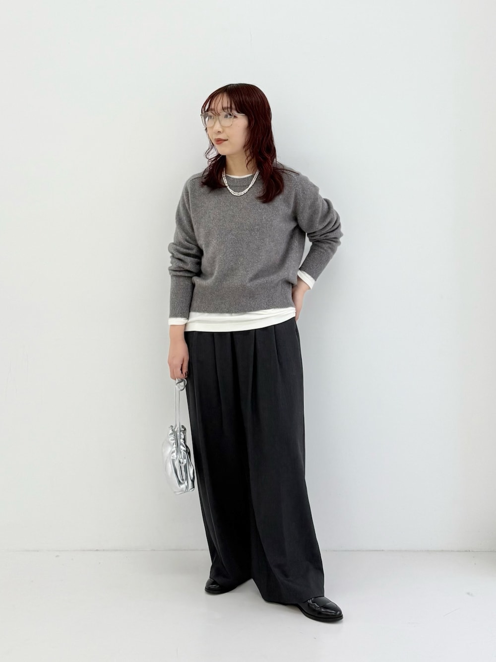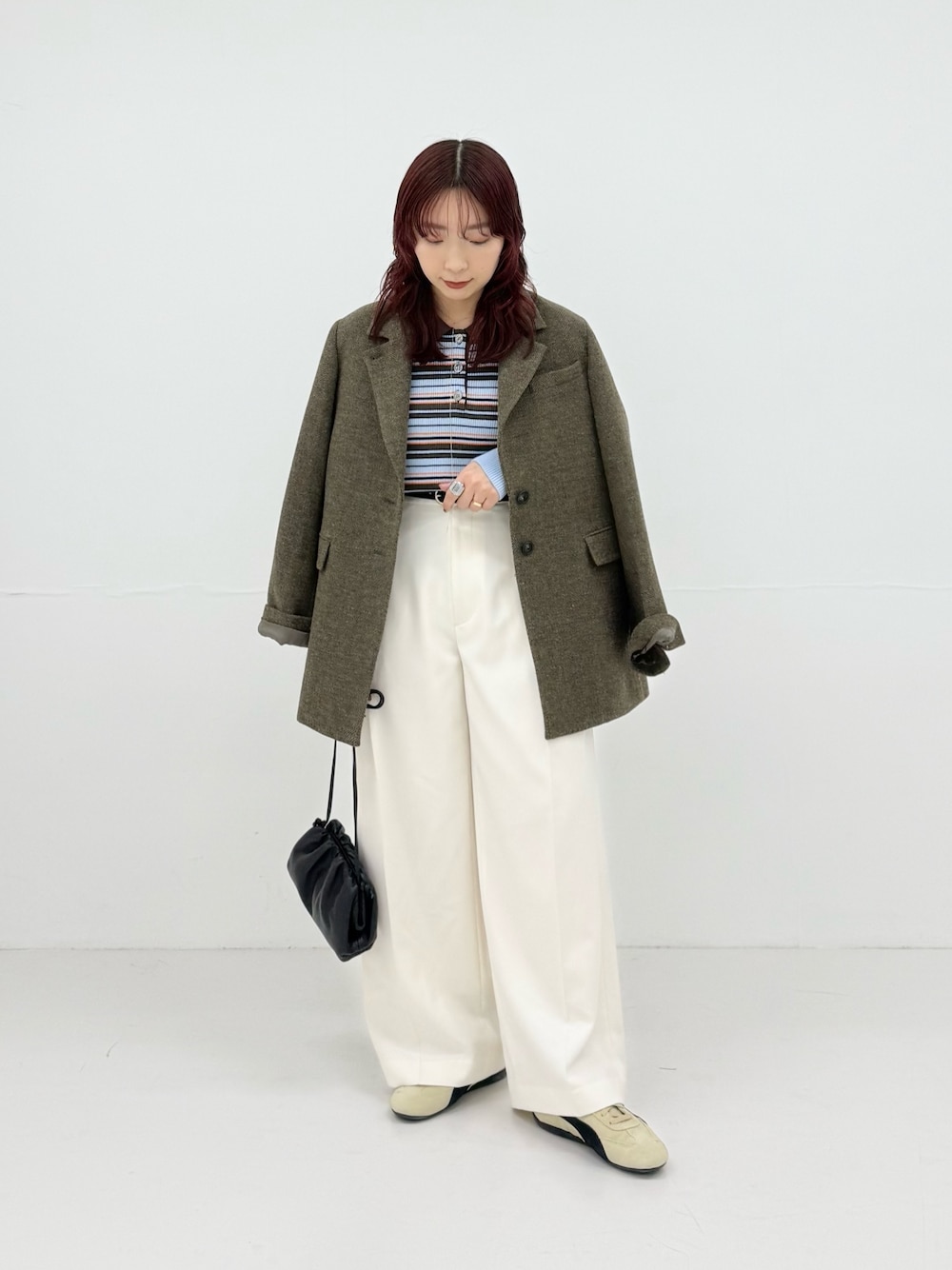 ベーシックなデザインなので、ざっくりとしたニットやブラウスなど、幅広いトップスと好相性。選べる3サイズ展開で、お好みのバランスを見つけていただけます。