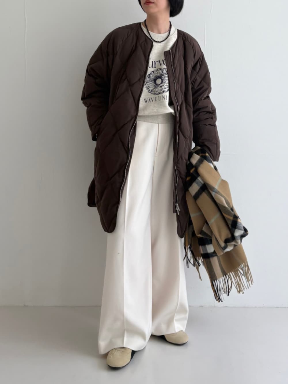 ベーシックなデザインなので、ざっくりとしたニットやブラウスなど、幅広いトップスと好相性。選べる3サイズ展開で、お好みのバランスを見つけていただけます。