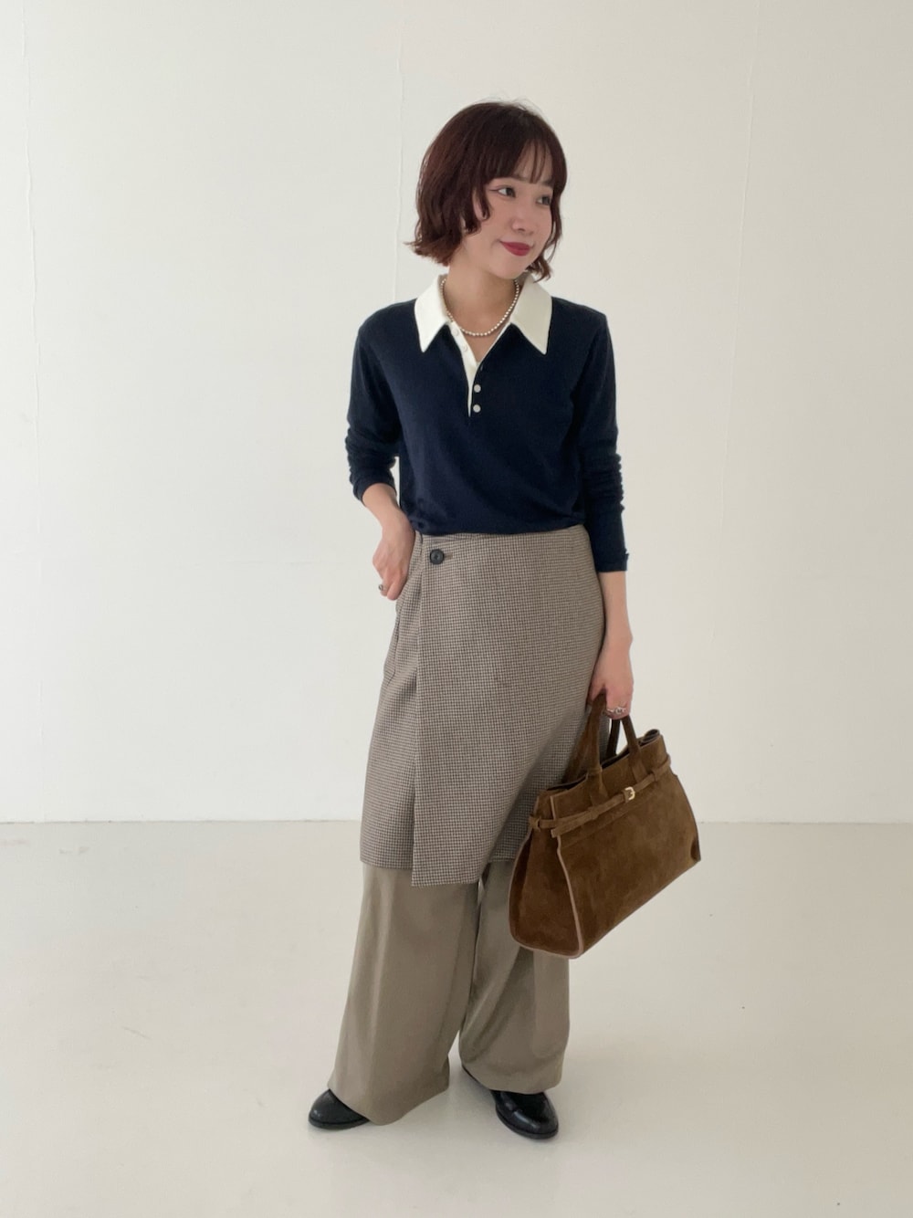 足元はロングブーツ合わせや、靴下にローファーを合わせるのも今期のおすすめです。