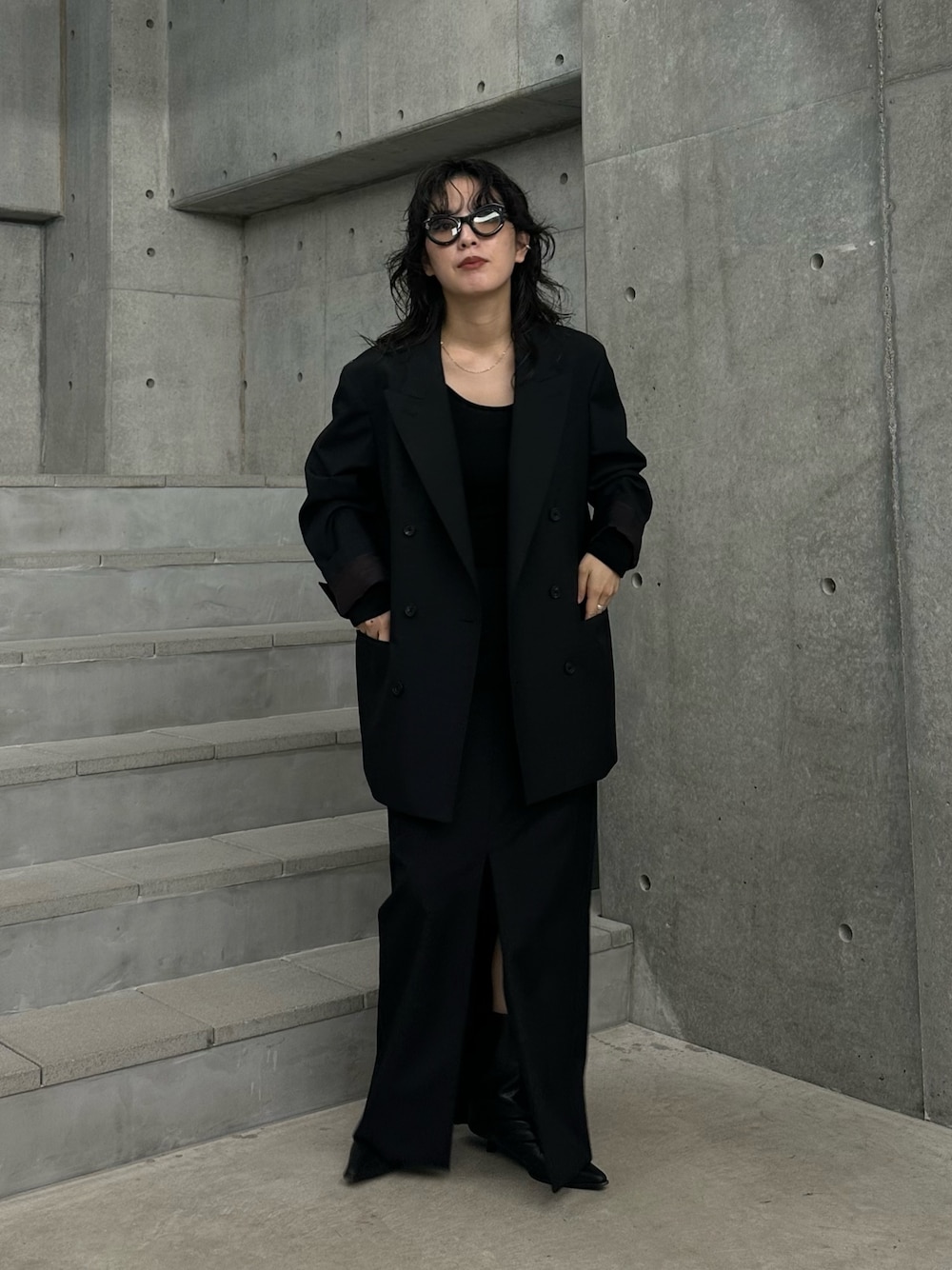 裾にかけてストンと落ちる縦長シルエットが、スタイルアップ効果を発揮。深めに入ったバックスリットが、歩くたびに軽やかな抜け感を演出し、ハンサムながらも女性らしい着こなしが叶います。