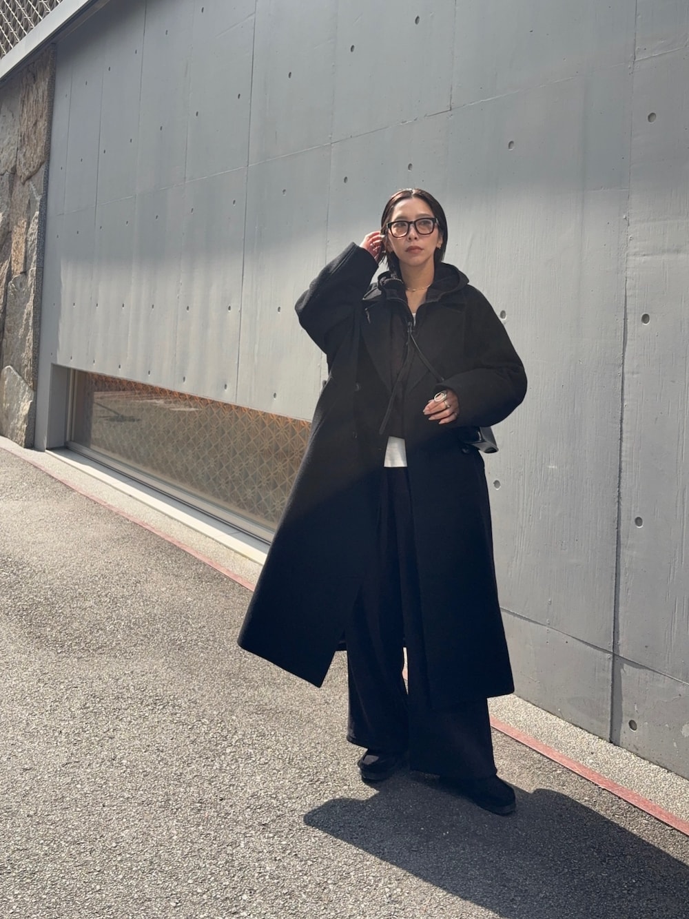 共布のベルトでウエストをマークすれば、女性らしいメリハリのある着こなしが楽しめます。襟を立ててスタンドカラーにアレンジすることもできるので、その日の気分やスタイルに合わせて印象を変えられます。