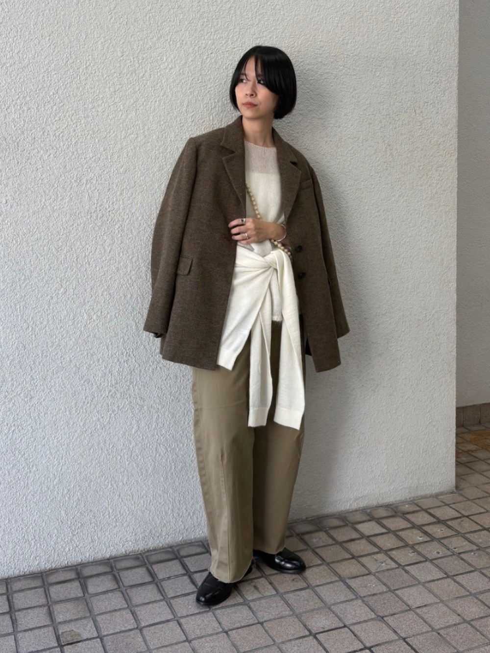 オーバーサイズでゆったりとしたシルエットは、中に厚手のニットも着込めます。アウターとして真冬まで活躍する、頼れる一着です。