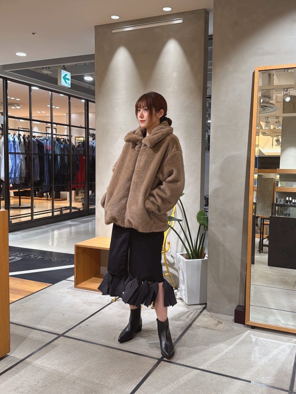 上品なミンクライクファーが目を引く、トレンド感あふれるアウター。
