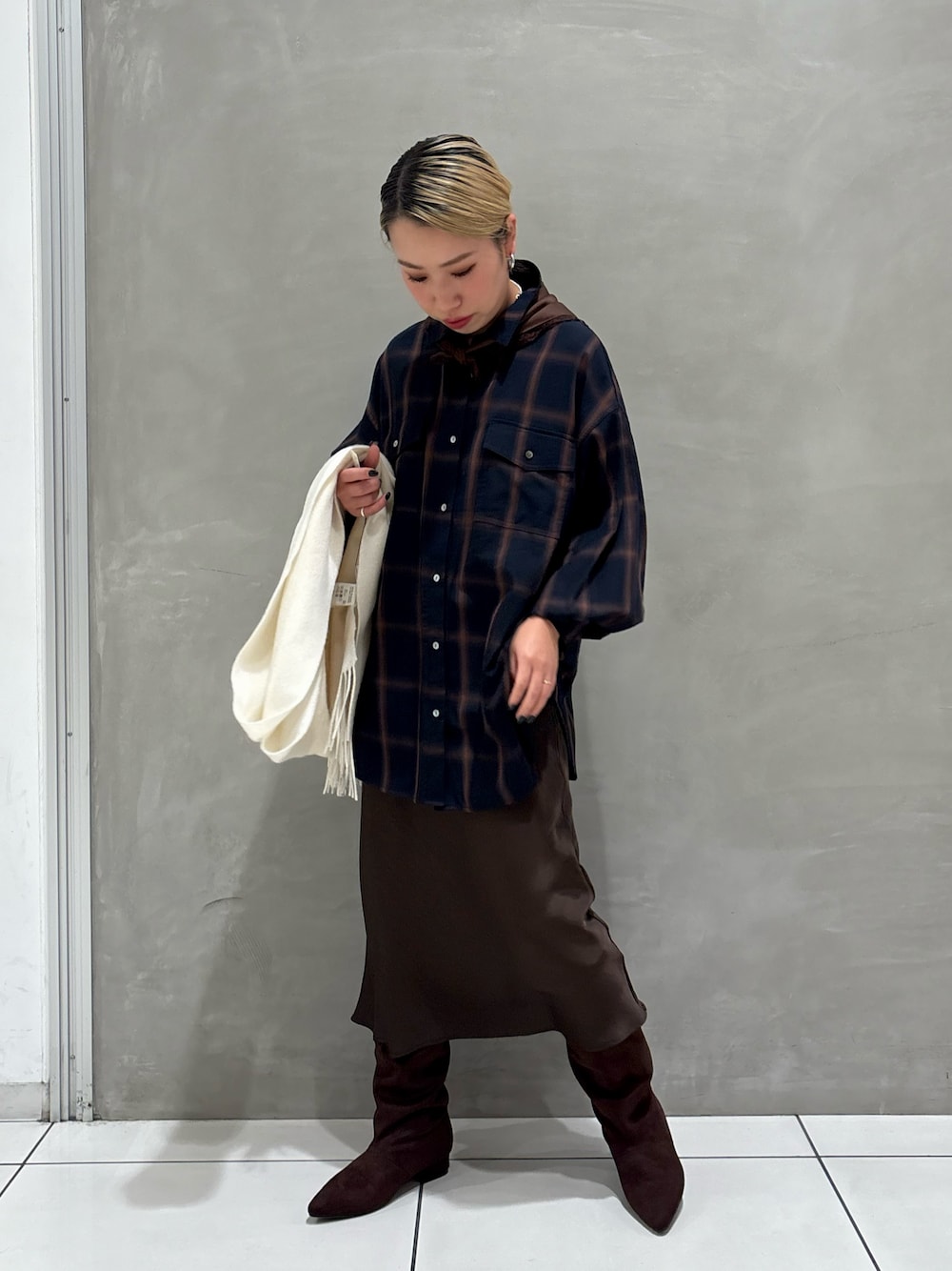 程よいボリューム感で、巻き方のアレンジもしやすく、デイリーに使いやすいのが特徴。無地とチェック柄のバリエーションでご用意しており、シンプルな冬のコーディネートの差し色としても活躍します。
