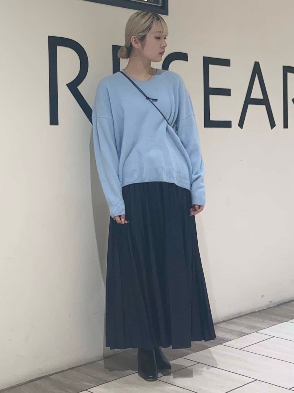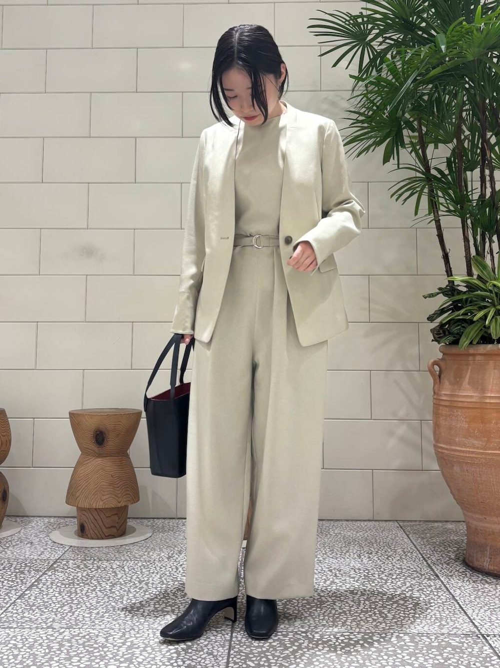 スッキリとしたスクエアトゥーがシャープな印象を与え、ボリュームのあるボトムスとのスタイリングもすっきりとまとまります。