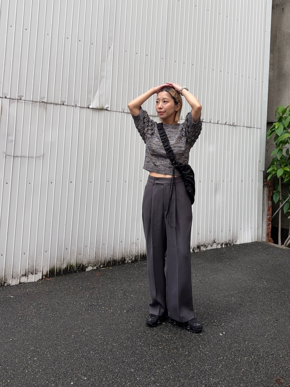1枚で着映えする、立体的なランタンスリーブとミックスカラー糸が目を惹くニット。見頃はシンプルな編地で、肩から袖口にかけては丸みを持たせたぽこぽことした立体感のあるニュアンスをプラス。首元、袖口、裾には太めのリブを施しシルエットをしっかりとキープしつつ、着脱のしやすさと程よいホールド感があります。袖のぽこぽことした編地の間に施された穴のデザインは、デザイン面だけでなく、通気性も確保。清涼感と軽さを感じさせる春夏らしい肌触りもポイントです。コンパクトな着丈を活かし、ボリュームのあるワイドパンツやロングスカートと合わせるとウエストラインをスッキリ見せつつ、袖のボリュームを際立たせたメリハリのある着こなしが叶います。