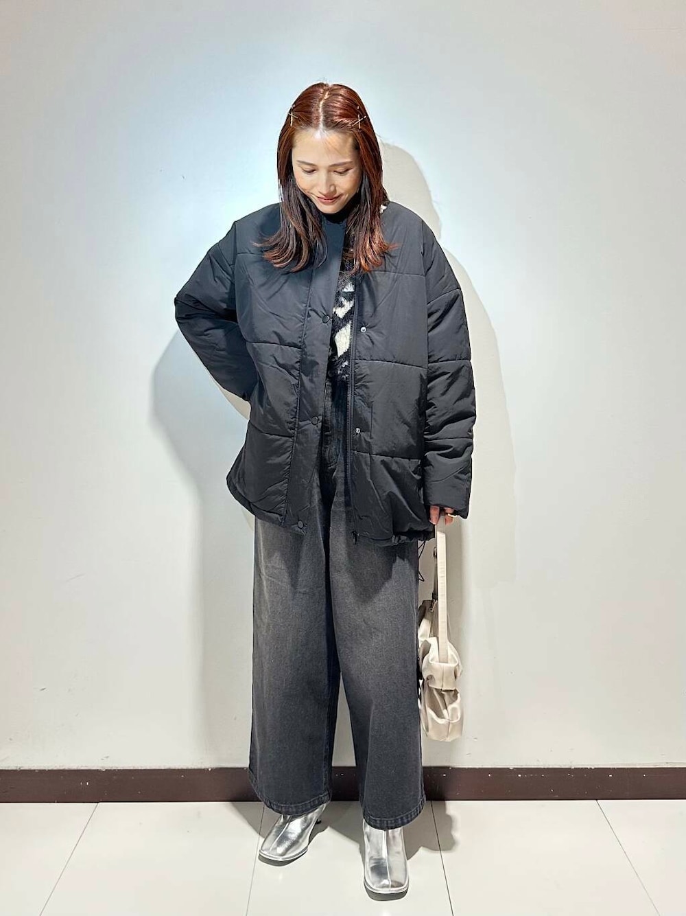 ギャザーデザインを主役に、デニムスタイルなどのカジュアルなコーディネートもおすすめ。また、ワントーンコーデに差し色として合わせていただくのもおすすめ。
