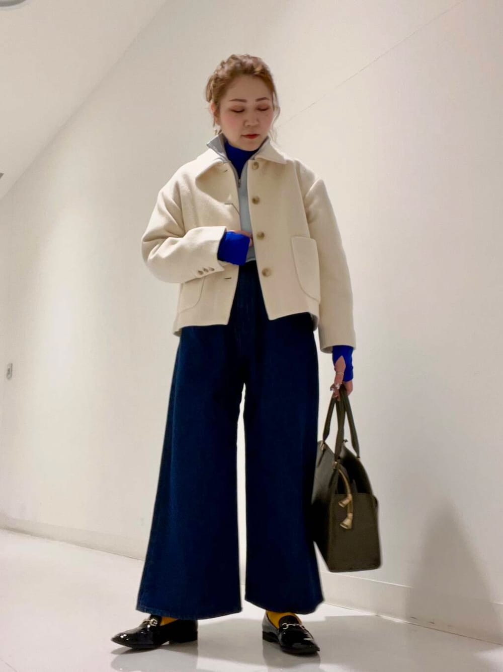 ジャケットスタイルなどのマニッシュなスタイルに合わせたこなれ感のあるコーディネートにおすすめ。