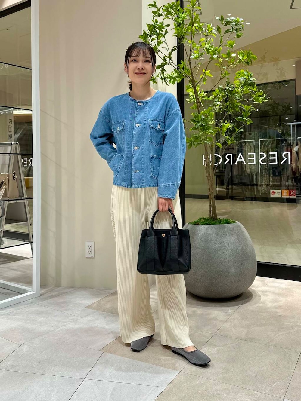 パンツスタイルには勿論、サテン生地などのきれいめなスカートに合わせたきれいめなコーディネートもおすすめです。