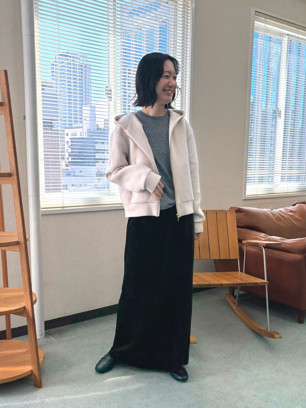 デニムなどのカジュアルなコーディネートには勿論、きれいめなコーディネートにもマッチするデザインなのでスカートスタイルにもおすすめ。