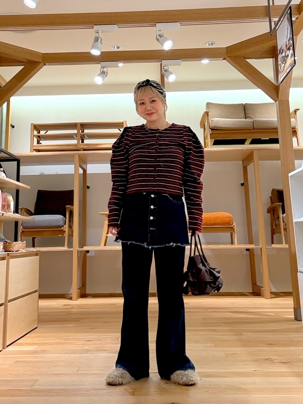 デニムアイテムと合わせるとカジュアルな印象に。リボンモチーフと合わせていただくとトレンドライクな印象になりおすすめです。
