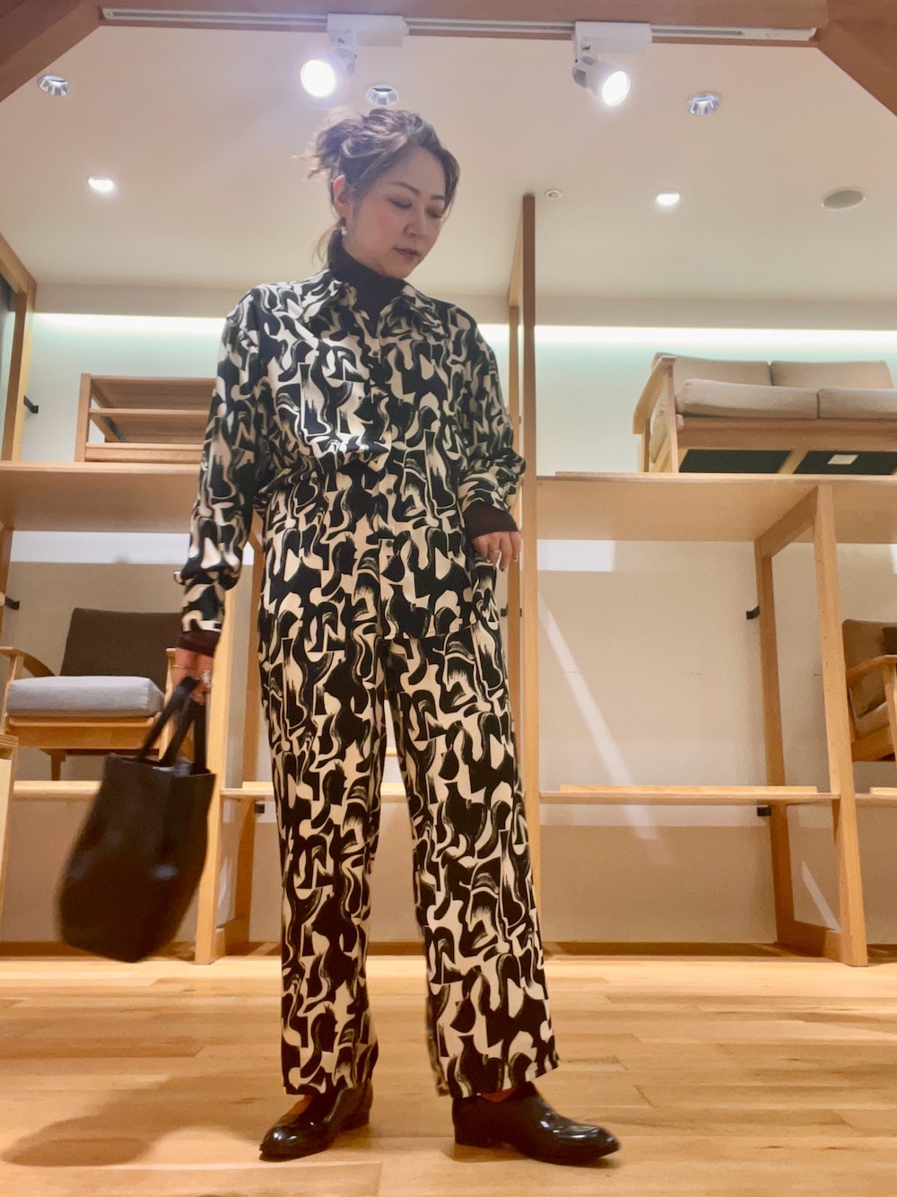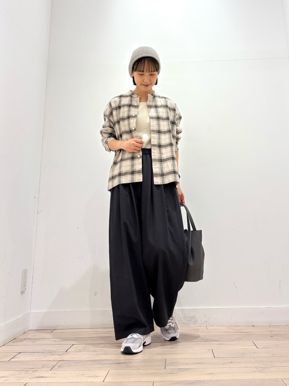 スカートにもパンツにも合わせやすく、パンツスタイルでもきれいめにまとまります。