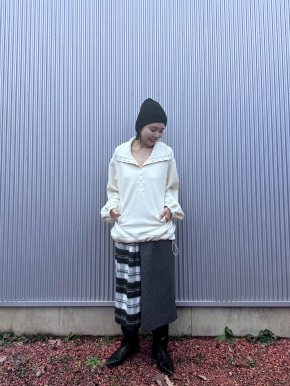 ミニ丈のボトムスにはもちろん、ロングスカートやワンピースに合わせると、ブーツの筒部分が隠れて今年らしいバランスに。