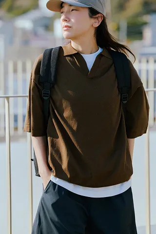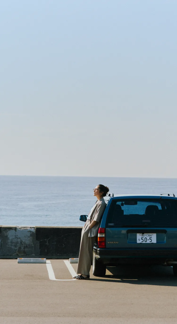 「サマシェア」シリーズより、新たにニットが登場。コンパクトなのでTシャツ感覚で、でも見た目はTシャツよりも綺麗めに着られるのが魅力。同じく接触冷感やUVカット機能をもつ「完声」シリーズと合わせ、快適で気ままなドライブへ出発。