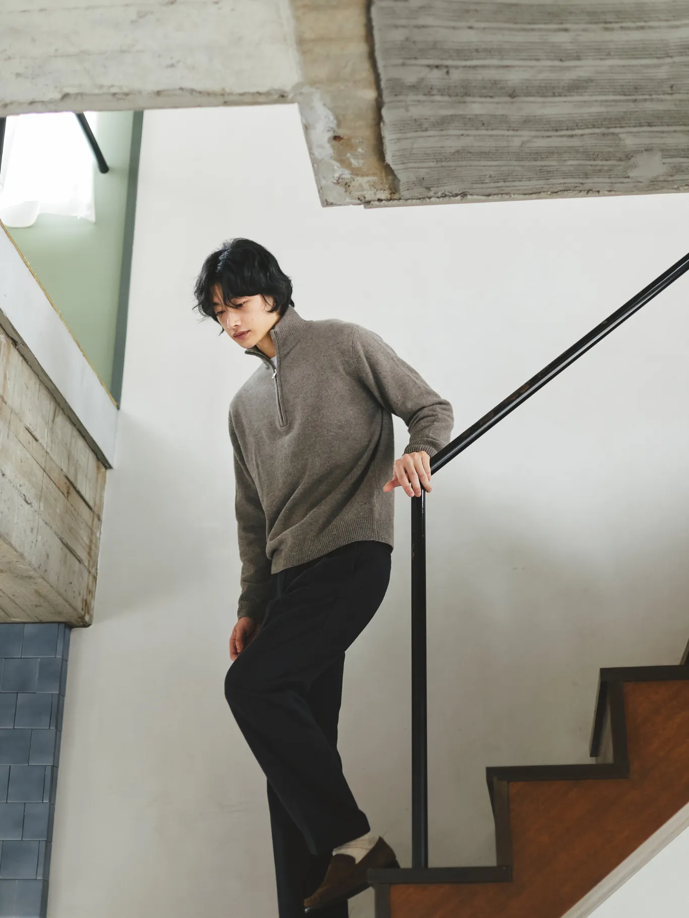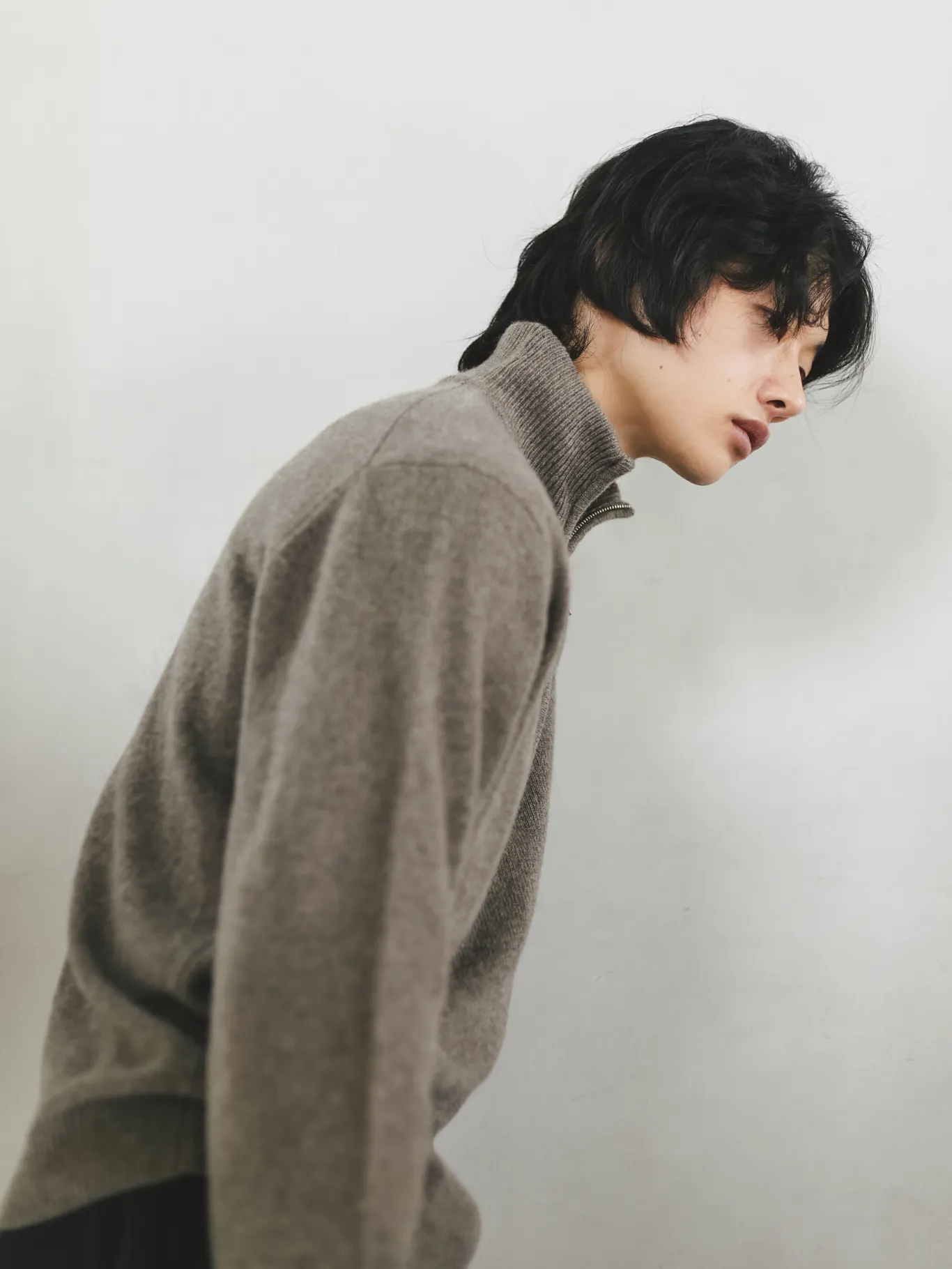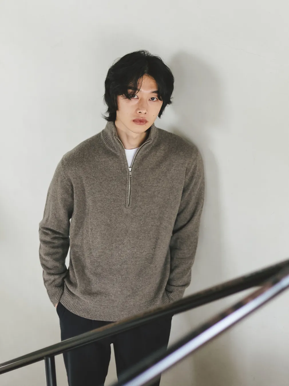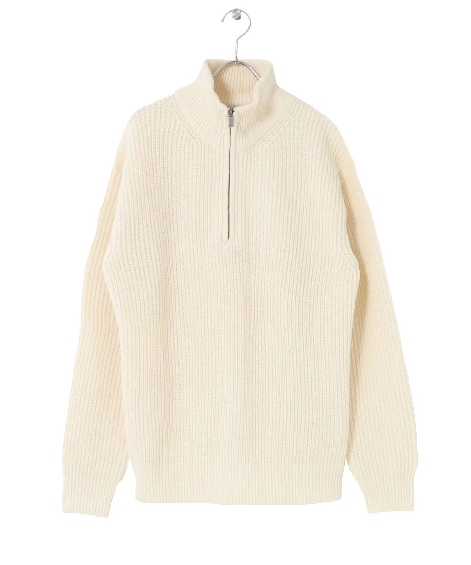 ハミルトンウールの持つ滑らかな肌触りを活かした大人のニット。トレンドのハーフジップデザインが、冬の装いに上質な温もりと、現代的な品格ある表情を添えます。フロントの開き具合で印象を変えられるのも魅力的。