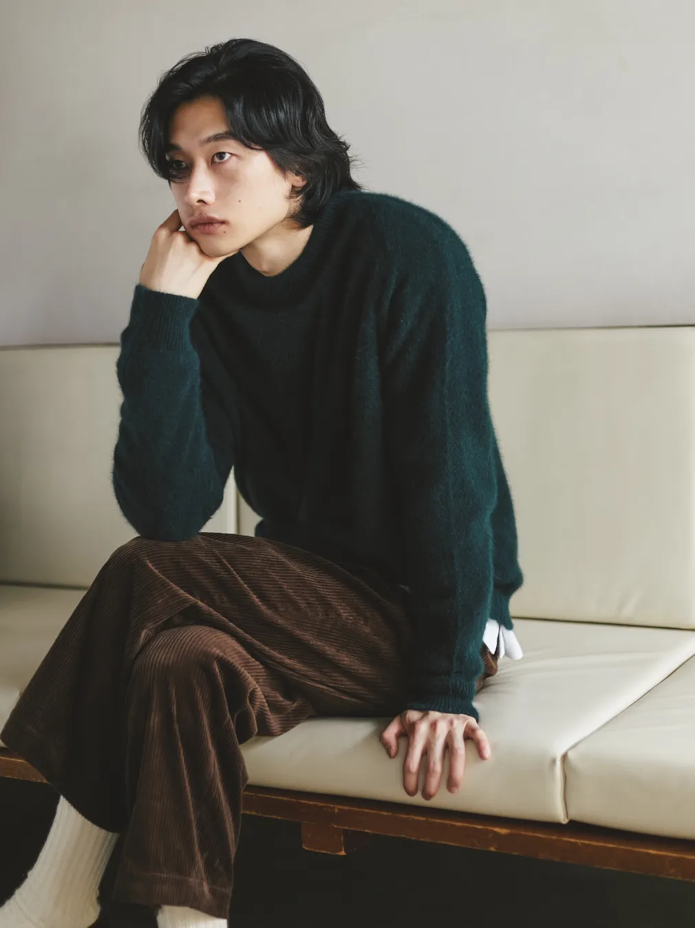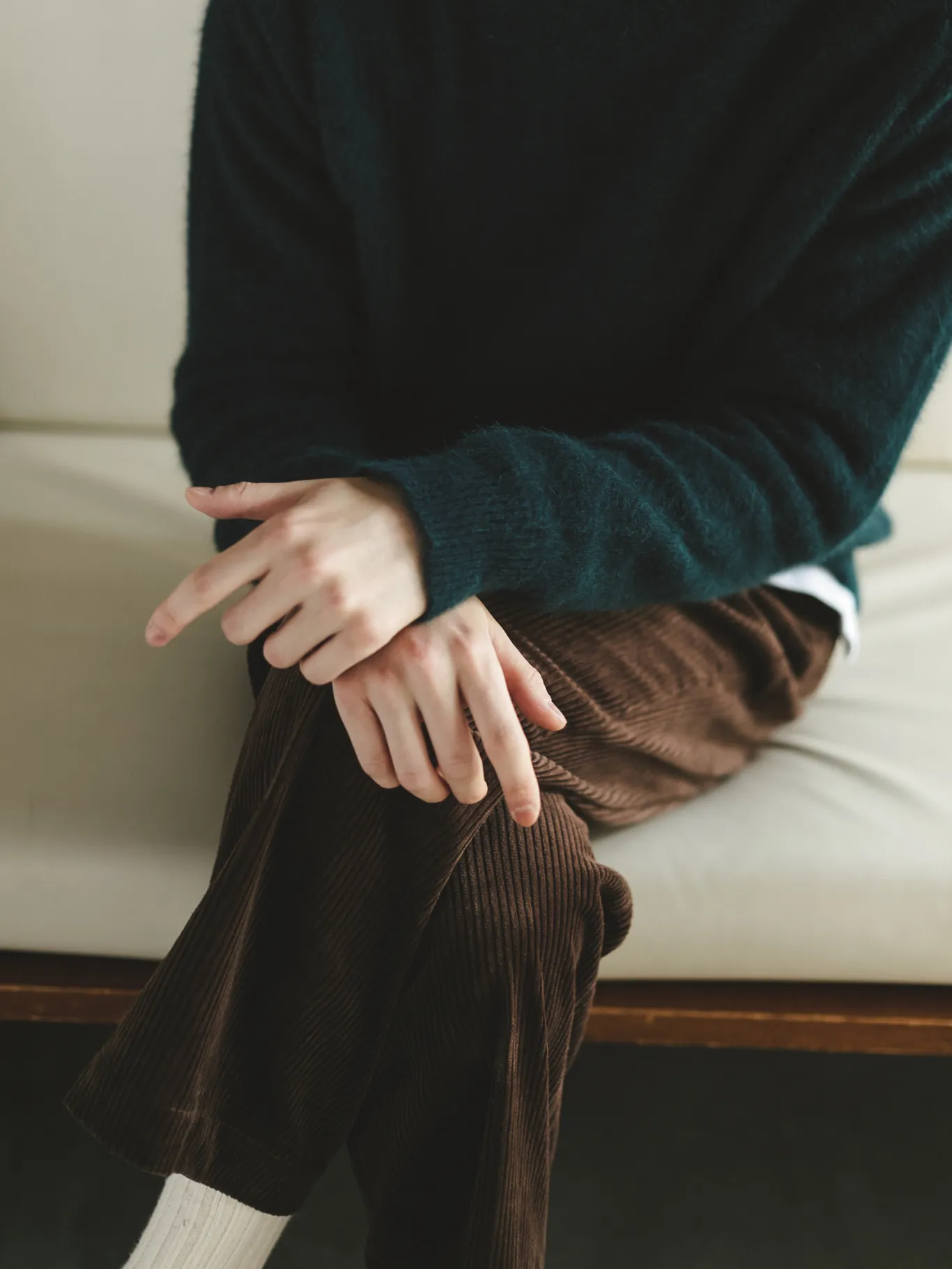 高級感のあるフォックスカシミヤニットは、繊細でとろけるような肌触りが魅力。その高い保温性で冬の寒さをしっかりと防ぎます。特に、トレンドの深みあるグリーンは、旬のムードと洗練された上質感をプラス。