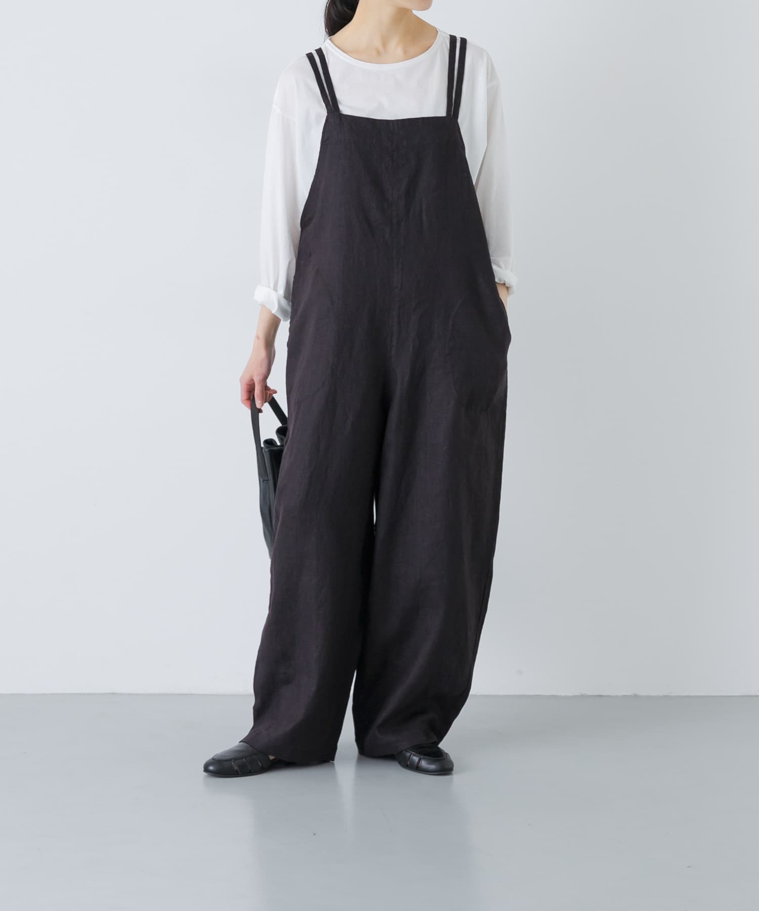 大人の上品な印象で着用頂けるサロペットで、シンプルながらも1枚で洒落感をだしてくれます。