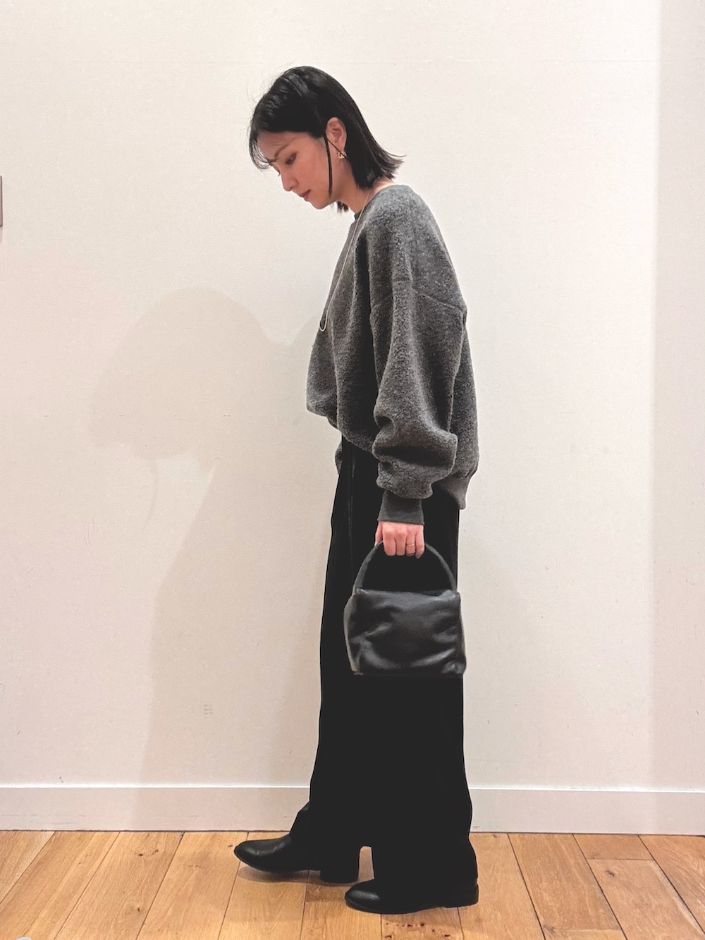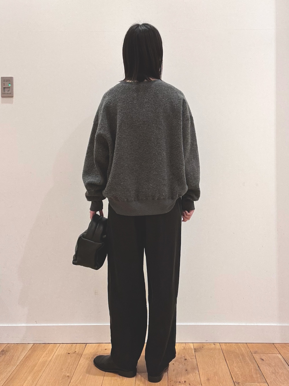 スウェット感覚で使えるので何にでも合わせやすく、軽くて暖かいのでニットの代わりにも。