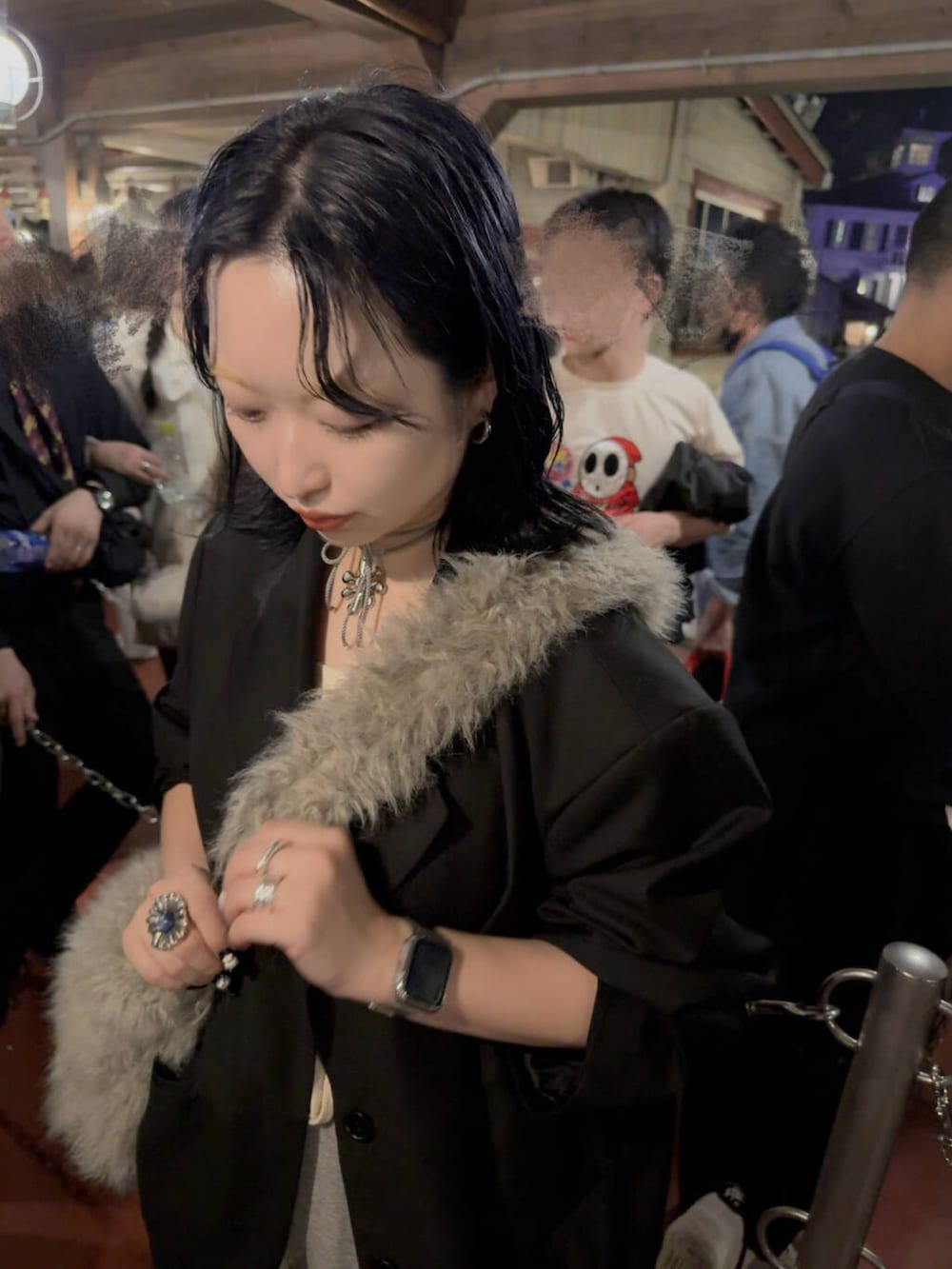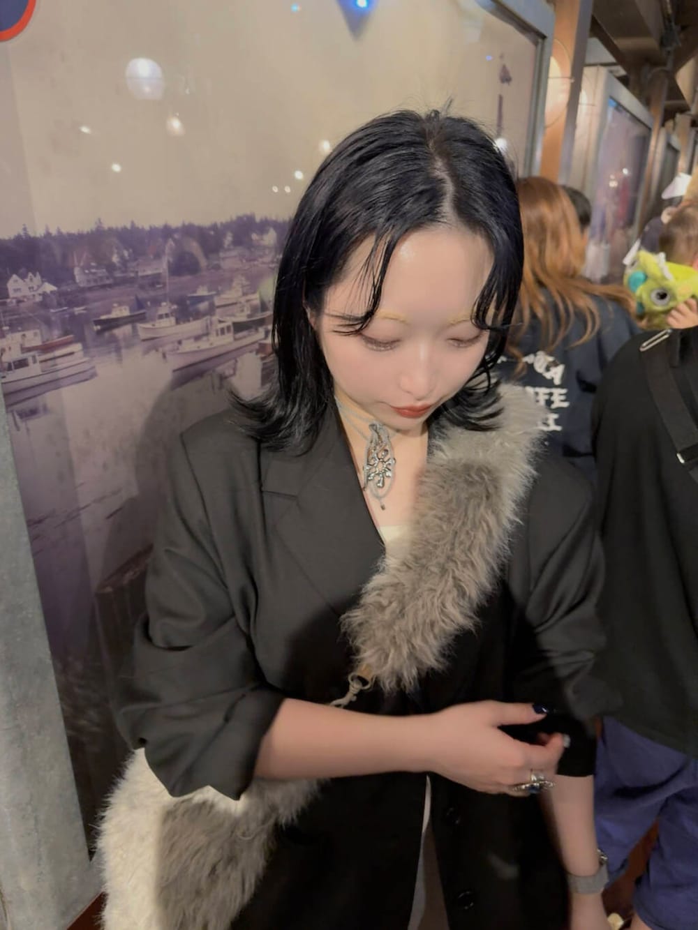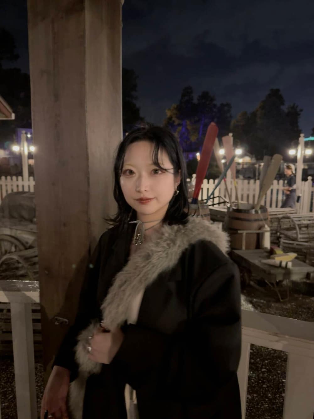 オーバーなジャケットにスウェットパンツでカジュアルにჱ̒( . ̫ . )ファーバッグをワンポイントで持ってみました👝