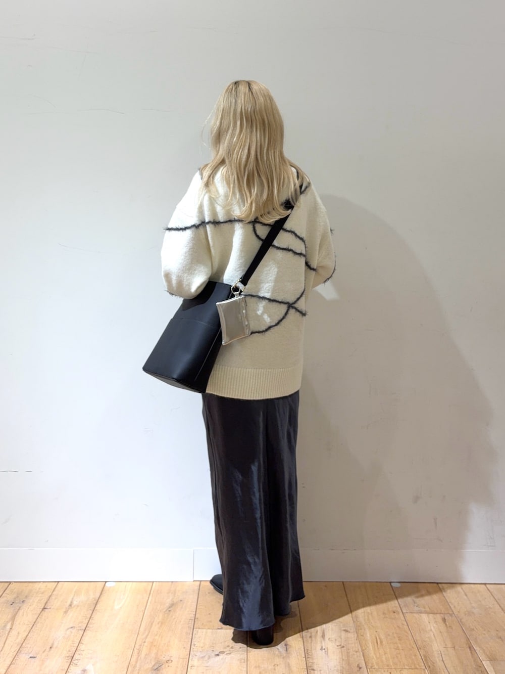 センスオブプレイスのシャギーラインルーズニットを使ったコーデです🩶
