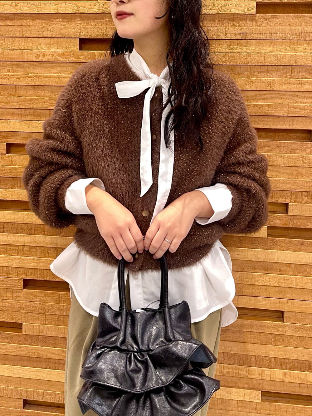SENSE OF PLACE『一部WEB限定カラー』ラメシャギークロップドカーディガン- 着用カラー: